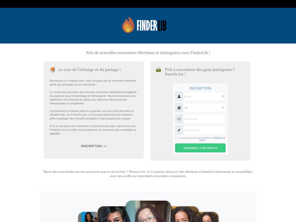Le processus d’inscription sur FinderLib est simple et rapide. En quelques minutes, vous pouvez créer votre profil et commencer à naviguer parmi les nombreux membres inscrits. La plateforme met l’accent sur la discrétion et la sécurité, garantissant que vos informations personnelles restent protégées.